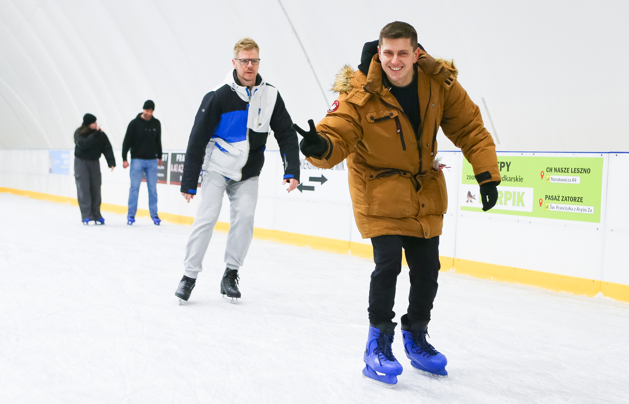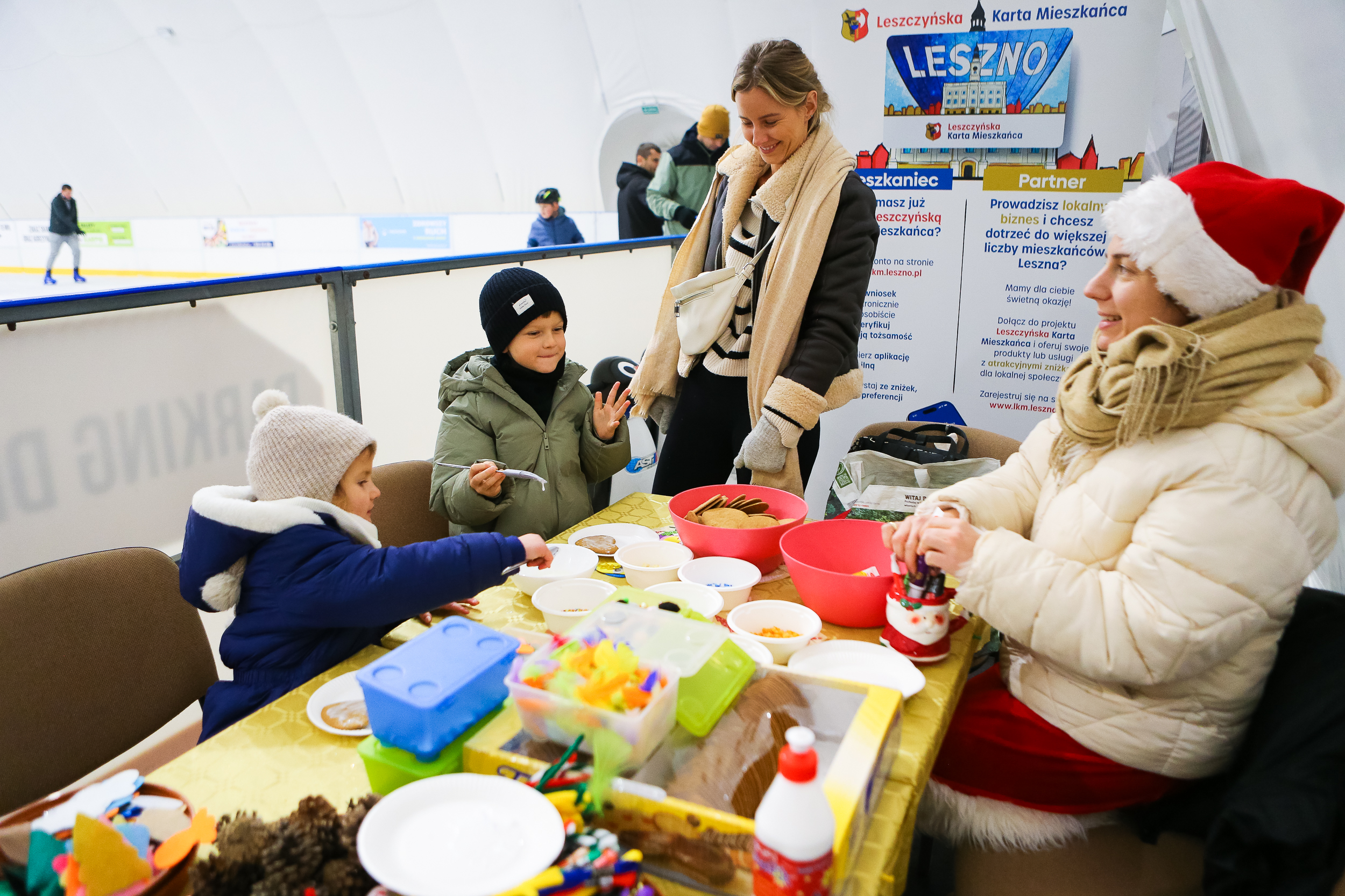Trzy godziny dobrej zabawy mieli uczestnicy ,,Mikołajek na lodowisku”, które dla nich przygotowaliśmy. Było kolorowo, wesoło i świątecznie. W programie imprezy znalazły się konkursy i zabawy, malowanie twarzy, zdobienie pierników oraz sesja fotograficzna. Bawiły się dzieci oraz dorośli. W imprezie wzięły udział także dwie grupy leszczyńskich mażoretek.