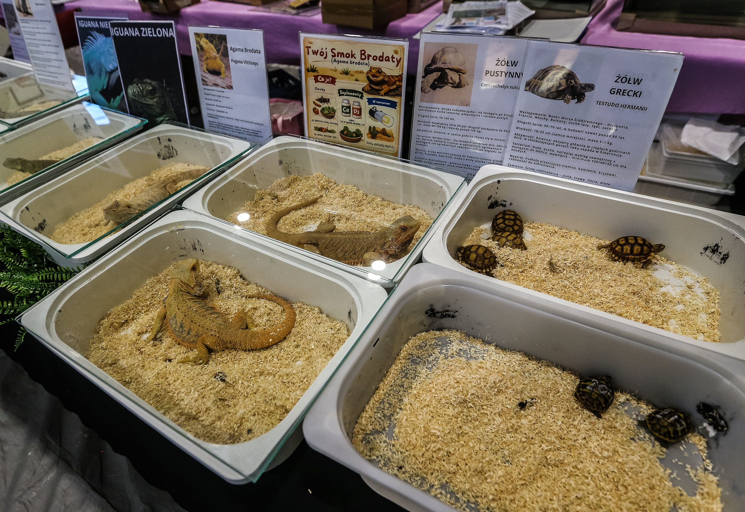 Odwiedzający targi mieli okazję podziwiać unikatowe okazy – kameleony jemeńskie, teju argentyńskie, żółwie greckie i wodne, warany, legwany, modliszki, skakuny i wiele innych.