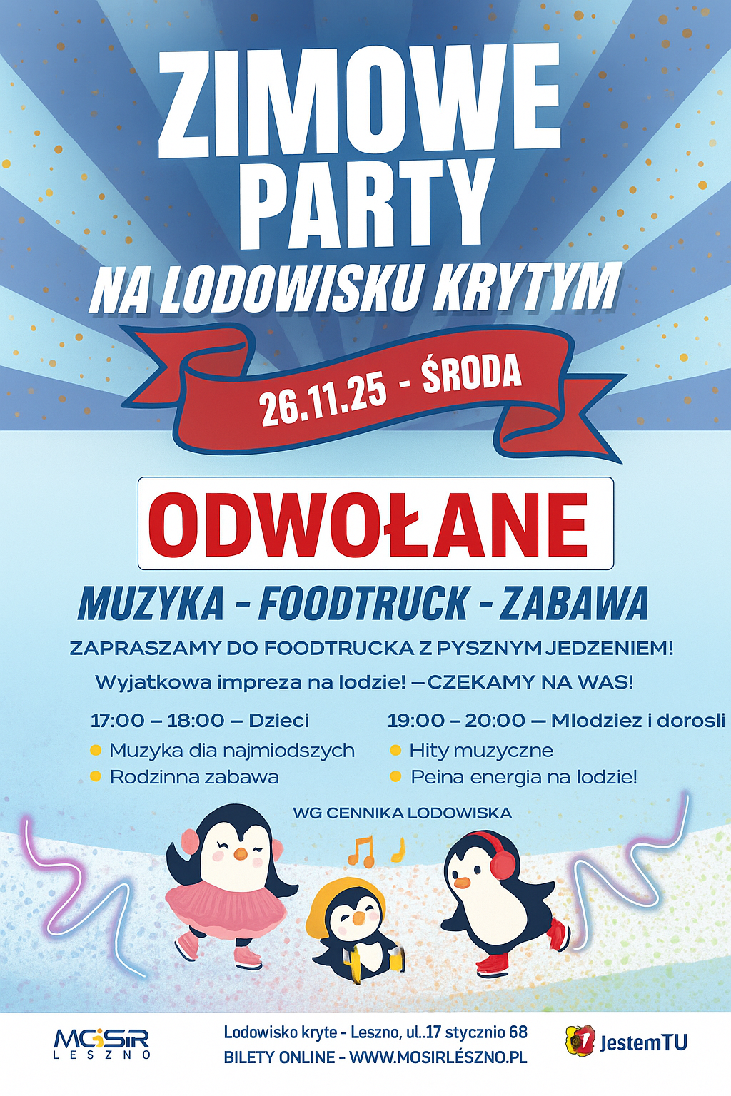 W czwartek (4 grudnia) lodowisko kryte MOSiR wznowi działalność po ubiegłotygodniowej awarii. Startujemy o g. 8.00. I zapraszamy tego samego dnia, czyli w czwartek (4 grudnia) na ,,Mikołajki na lodzie”. Przygotowaliśmy wiele atrakcji. Będzie nie tylko dobra muzyka, ale również konkursy i zabawy, niespodzianki i Święty Mikołaj Już w czwartek na lodowisku poczujecie prawdziwą magię świąt (g.16.00-20.00). Przybywajcie!